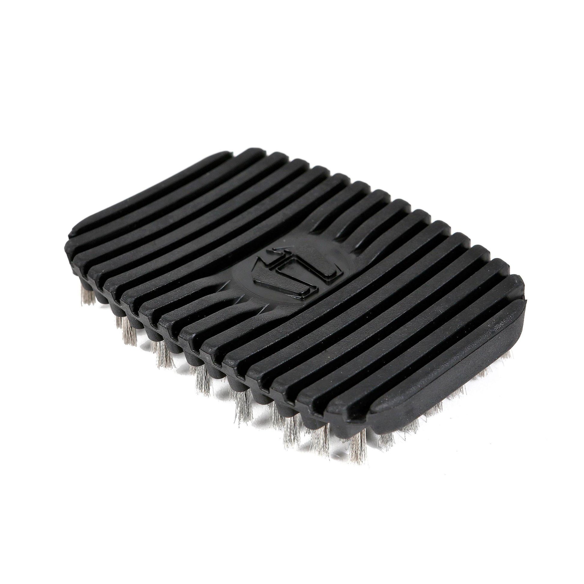 Flexible stainless steel bristle brush. Efficiently cleans any barbell, pull-up bar, kettlebell or dumbbell for a more sanitary gym environment. Keeps knurling free of debris for a more consistent grip. Easily removes surface rust and oxidation from old, tired barbells.
