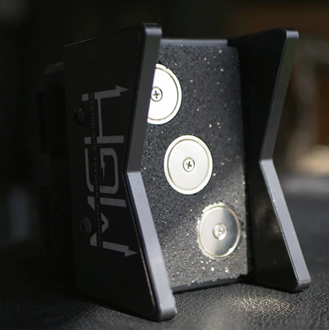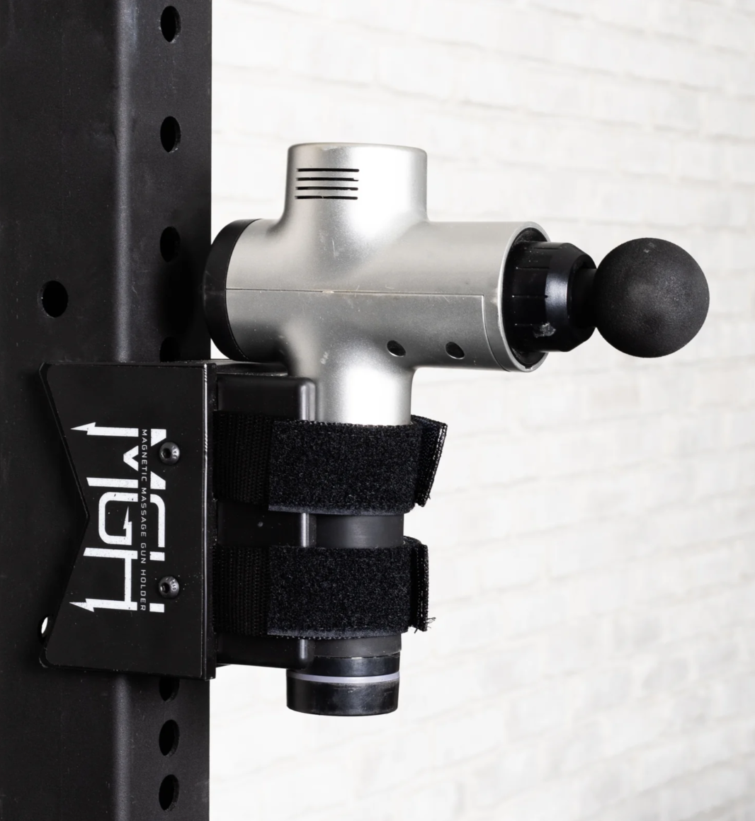 The Magnetic Massage Gun Holder is the first ever magnetically attached rackmounted massage gun holder. There is nothing easier to attach a massage gun to a rack out there. The ability to move the (MMGH) up and down to treat different areas of the body is key. This allows an athlete to treat themselves hands free as well as go through movement assisted treatment without a second person.