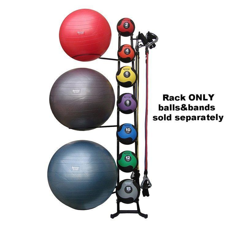 - Features 7 medicine ball rack, 3 fitness ball rings, 1 prop stand for ropes, bands and tubes