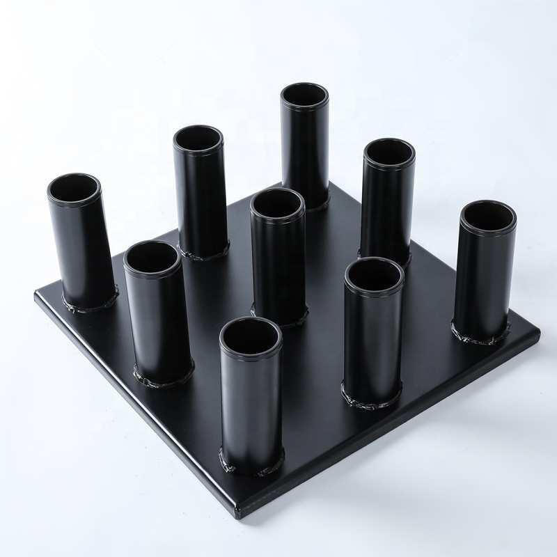 - 2" diameter upright storage sleeves to hold any Olympic-sized bar