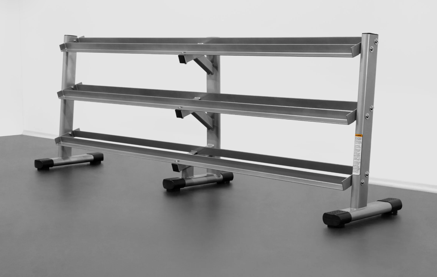 The commercial oval-tubed frame and three-tier rack is extremely durable and built to last. The outstanding features include rubber footpads, protective powder coat, and an angled design. These aspects protect the floor, ensure maximum durability, and are fitted to move the dumbbells with ease. This rack functions perfectly and looks striking with BodyKore’s signature black or silver shade. Start your home fitness journey with the G243 dumbbell rack.
