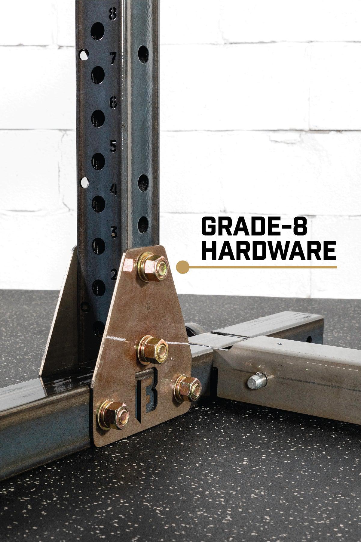 With the Bridge Phoenix Squat Rack, space is no longer an issue. Constructed from 3x3” 11-gauge tube steel and ¼” formed flat steel this rack is BUILT to withstand the rigors of commercial gym use while maintaining home gym versatility. The Phoenix Squat Rack can go from its open footprint of 49”x48” to its locked footprint of 12”x48” in less than a minute, giving you the ability to hit your biggest lifts in the smallest spaces.
