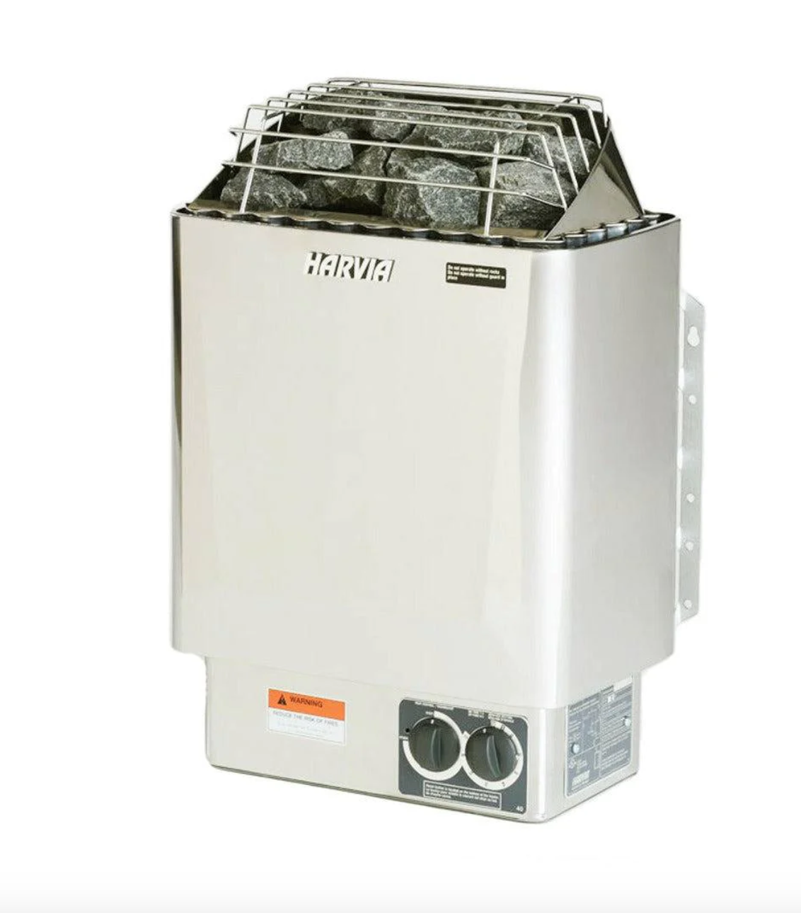 - Includes a Harvia KIP-60B Electric Sauna Heater with 3 Sided Heater Guard