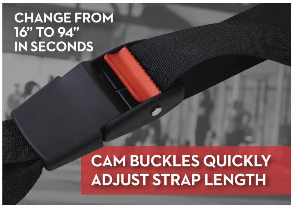 - Industrial-strength suspension straps are built for punishing commercial use and the adjustable inline buckles allow for rapid strap length adjustment to quickly change between high and low exercises. EASY-IN molded foot cradles retain shape for SAFER use when training lower body and core.