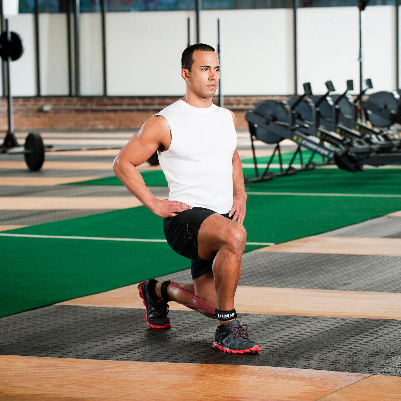 The Lifeline Monster Walk is great for increasing lower body strength for use during rehabilitation, lower body training movements and speed & agility training. Increase lower body dynamic strength by adding progressive variable resistance to lateral, sport-specific drills and training workouts and use rotational exercises like hip abduction, clamshells, lunges, extensions, and leg curls to increase speed and leg drive. The Monster Walk is a great way to warm up muscles to help reduce the chance of injury. Allows for multidirectional and multiplanar exercises that are great for preventing or rehabbing injuries and improving the agility and balance that comes with repeating coordinated, complex movements. The Monster Walk is used for basketball, volleyball, track & field and all manner of athletic training to build explosiveness, lower body strengthening and speed and agility training workouts. Increase lower body dynamic strength as a result of adding intensity and consistent positive and negative resistance to jumping, squatting and all manner of lower body drills and exercises. Different exercises target and strengthen thighs, glutes, hamstrings, and calves with lunges, extensions, and curls. Increase speed and stride length for explosive moves; shuffle in all directions for freedom of movement, balance improvement, and robust leg drive. The 30-inch Ring provides constant tension and is made from durable, high quality natural latex using Lifeline's Progressive Layering Technology™. The size adjustable secure ankle cuffs are padded for comfort. Available in three (3) resistance levels: 20lb, 30lb or 40lb- Sold Individually. Resistance training uses resistance or force to induce muscular contraction, which builds strength and anaerobic endurance. Resistance exercises also help you increase bone density, improve metabolism and decrease your risk of injury. At Lifeline, we provide resistance training equipment that is both innovative and mobile to make your workout routine both effective and convenient. By doing so, our products are easy to use and can provide significant benefits in overall health and well-being by increasing bone, muscle, tendon and ligament strength.Multidirectional resistance targets and rehabs under-used muscle groups