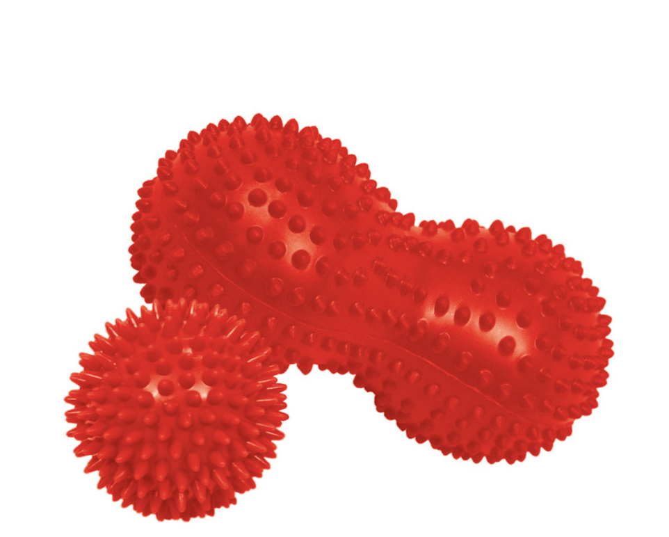 These two small rolling devices provide massage therapy and apply concentrated pressure to aching muscles and key trigger points. Outfitted with knobs to increase circulation and relax muscles, these post-workout, physical therapy devices relieve chronic tension and disperses the effects of lactic acid so you can recover faster and improve your strength and flexibility.