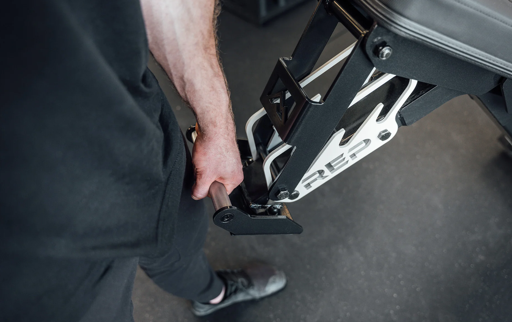 The commercial-grade AB-5200 2.0 is incredibly durable, made with 11-gauge steel and heavy-duty bolts, while being an incredible value for lifters who want one of the best adjustable benches for their home gym. It weighs 115lbs and boasts a weight capacity of 1,000lbs. Yet it’s easy to move around, thanks to a horizontal, knurled, stainless-steel front handle. And you can store it vertically on its improved, metal, plastic-lined stand, only taking up 3.1SQFT of space in your gym. A closed ladder design for both the seat and back pad keeps the ladder in place when adjusting the bench and when storing it vertically. Grooved, rubber back feet help keep the bench in place, while protecting the floor. The bench is topped off with more high-end details, such as a laser-cut REP logo on the front and back ladders, black hardware, and a laser-cut mountain logo on the front ladder. The AB-5200 2.0 was designed in Denver, CO, and is protected by one or more issued and/or pending patents.