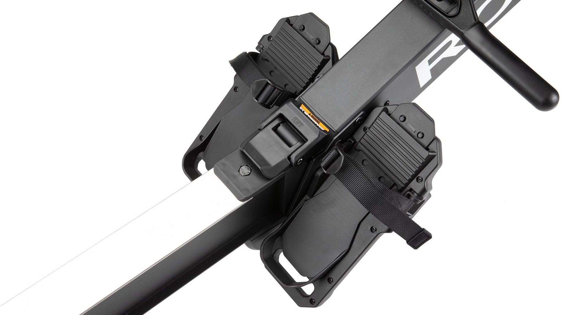 The patent pending quick release lever design allows athletes to quickly set and release the foot straps, resulting in faster transitions when it counts the most. No more adjusting and loosening a slide buckle during transitions on and off the rower. Once the strap is initially adjusted to the athlete's foot, the quick release lever on the side can be utilized to release and re-secure the strap, allowing for a perfectly consistent adjustment round after round.