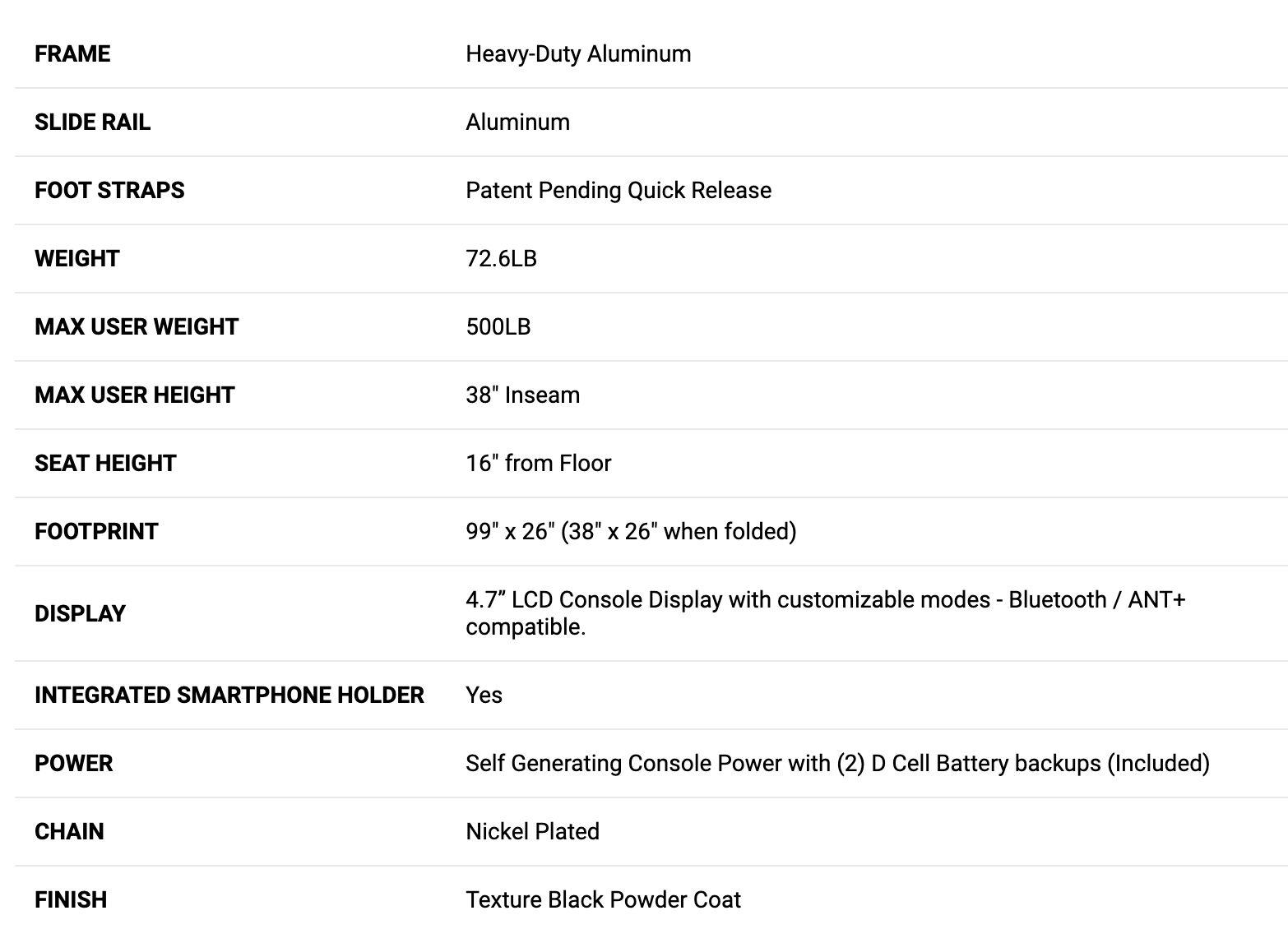 - Compatible with 3rd party apps, to include: ErgZone, Regatta, Peloton and other FTMS compatible apps