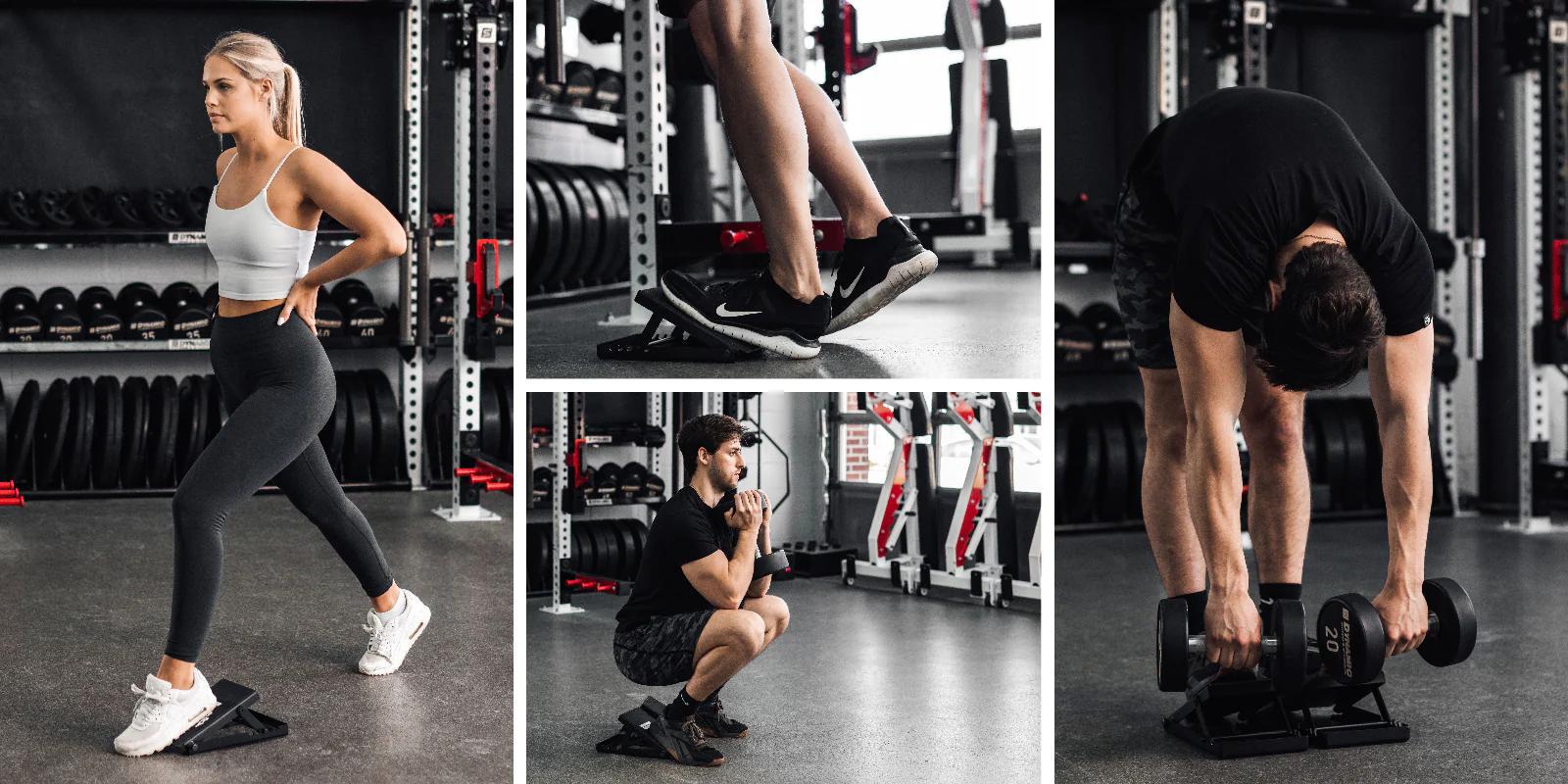The Slant Ramps are fully adjustable squat wedges and are excellent for many types of exercises and ability levels, perfect for Split Squats, VMO Squats, Squats, Jefferson Curls/Lengthening Deadlifts, Calf raises, and many more exercises!
