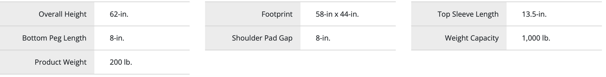 OLYMPIC SIZE WEIGHT POSTS: Load up on weight plates to add intensity to your squats, with 13 1/2” of loadable sleeve length on each of the shoulder sleeves. Use the 8” long weight pegs at the base for weight storage, clearing up your home or garage gym, and adding stability to the machine.