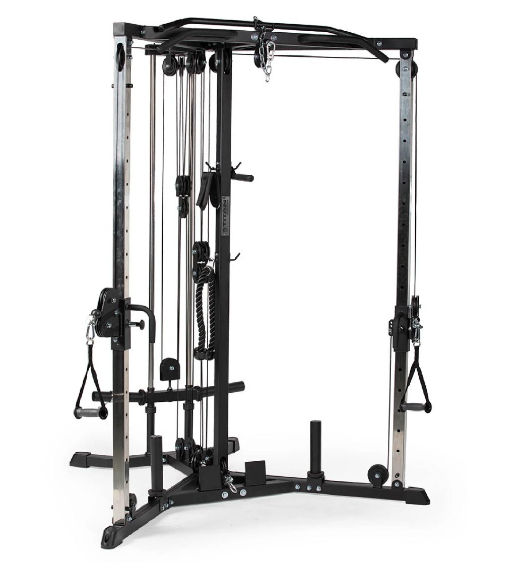 The specialty machine comes with dual stirrup handles, a lat bar, and a low row handle so you can quickly move from one exercise to the next to maximize your workout. Use the lower cables to add horizontal force to your regular activities such as lunges, squats, and step-ups – increasing your gains and adding new dynamics to your home gym.