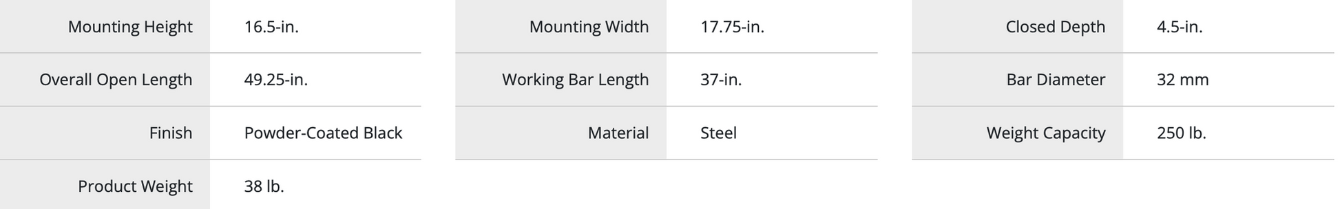 Outfit your home gym with the Wall-Mount Pop-Out Pull-Up Bar designed to mount on your wood studded wall and save space within small workout areas. Crafted from heavyweight steel construction that ensures stability and a solid feel. The bar features smooth and knurled grips for various training, a single pin locking system, and a space-saving design that will take up to 4.5-inches of space while in the closed position. Perform exercises to strengthen your back, upper body, and lateral muscles. Rated at a 250-pound weight capacity, this durable pull-up bar is a great strength accessory to add to an existing gym or instantly turn a room into one. Its unmatched fit and finish ensures countless years of hard use, even for the most demanding athlete.