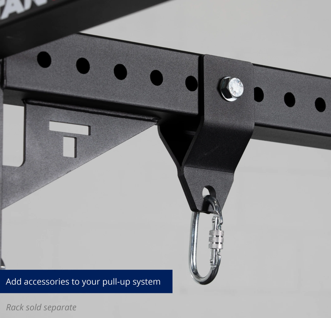 The Shackles by Titan Fitness® are the perfect way to add accessories to your X-3 Series Power Rack. Constructed from laser-cut, precision-bent steel that will hold a weight capacity of 500-pounds. This bolt-on set attaches to the upper 3 x 3-inch crossmemeber of your power rack with the included hardware. The shackles, paired with carabiners, allow you to hook into a variety of grip strength accessories including, rings, pull-up blocks, grip cylinders, spheres, and more. Additionally, you can mount the shackles to the front of your upright to add more variety to workouts or utilize them as a space saver to hang accessories.