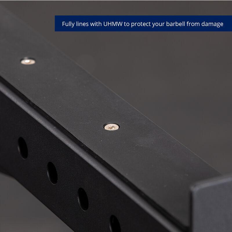The X-3 Series Spotter Arms from Titan Fitness® are designed specifically for the X-3 Series Power Racks to provide extra security when lifting weights alone. Constructed from heavy-duty 11-gauge steel, these Spotter Arms will hold a weight capacity of up to 1,500-pounds. Featuring fully lined UHMW plastic liners and a durable powder-coated finish to protect your safety catches and barbell from damage. Additionally, the arms are easy to adjust up and down your X-3 Series rack with quick pin adaptors. These durable Spotter Arms are an absolute must-have for anyone who prefers to do hard training alone.