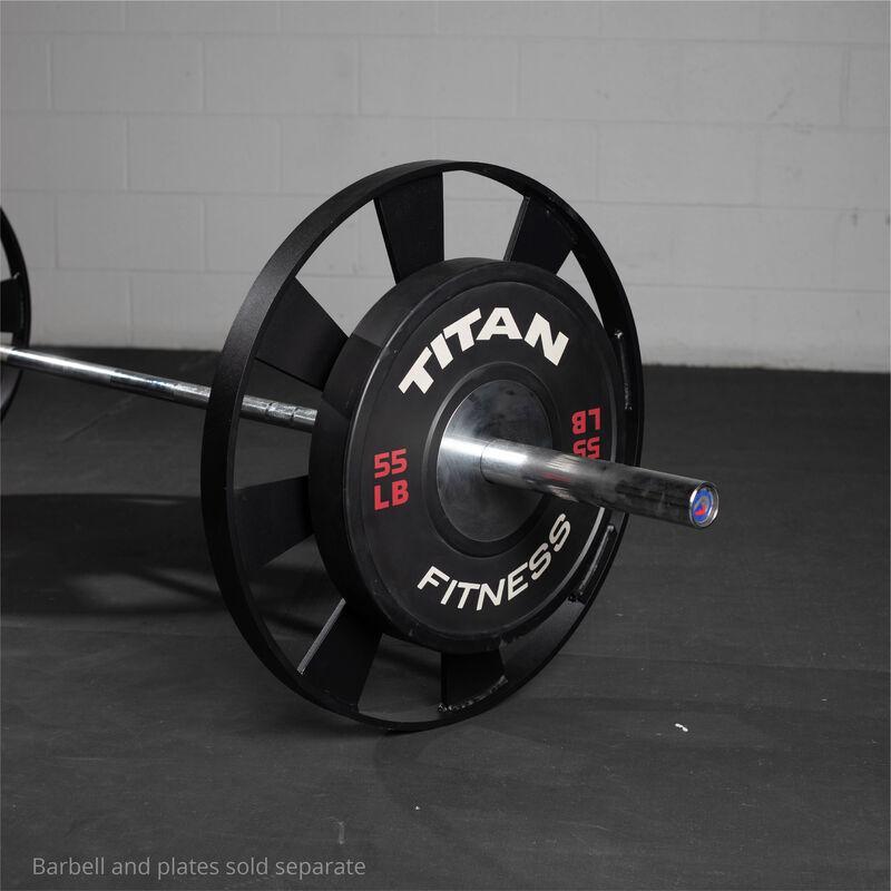 The Wagon Wheel Pulling Blocks are offered in a pair of 45-pound weights, designed for athletes from beginner to serious Deadlifter. Each plate is crafted from 0.375-inch-thick laser-cut steel, features a 51 mm collar opening and a 2-inch lip that helps carry and prevent wear from drops. These 26-inch Wagon Wheels eliminate the need for typical Deadlift Pulling Blocks. With their increased height verse the standard 17.7-inch weight plate, loading and unloading your barbell becomes a breeze without needing a jack or wedge. At this elevated height, the barbell is set up for partial range-of-motion deadlifts perfect for taller athletes or powerlifters suffering from knee and lower back issues.
