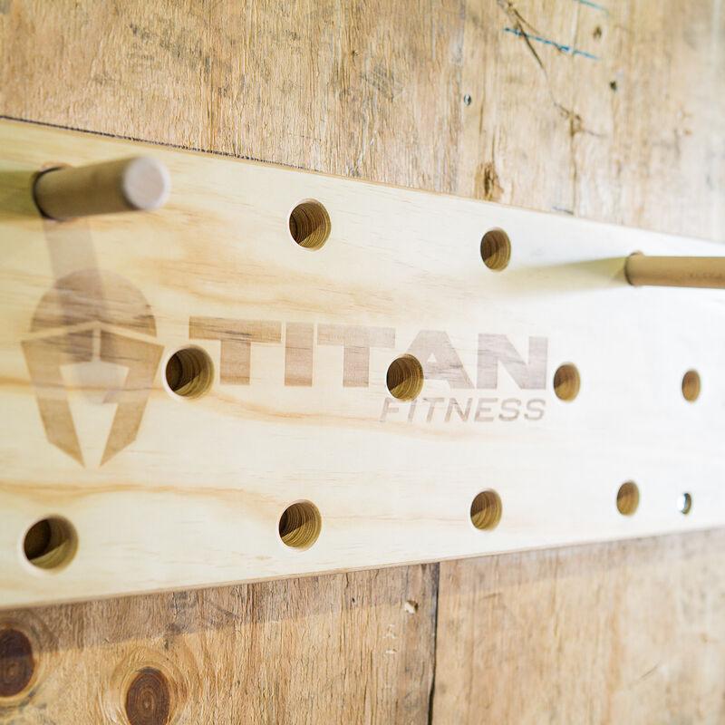 MOUNTING OPTIONS: The peg board can be mounted in horizontal or vertical orientation. Titan recommends securing firmly to a wall that can support the peg board as well as the weight added from the athlete.
